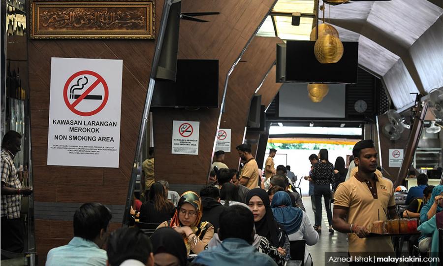 Denda tidak melebihi rm5,000 atau penjara tidak melebihi satu tahun sekiranya ada pelanggan merokok di dalam kawasan premis dilihat membebankan peniaga terutama bagi pengusaha warung makanan. Larangan merokok akan dikuatkuasa bermula hari ini di semua restoran dan premis makanan di seluruh negara. Larangan merokok tersebut berlaku bagi pengendara yang membawa penumpang di bawah 18 tahun. Larangan merokok (atau hukum bebas asap rokok) adalah kebijakan publik, termasuk hukum pidana dan peraturan keselamatan dan kesehatan kerja, yang melarang kegiatan merokok tembakau di tempat kerja dan ruang publik lainnya. Bagi para pengunjung yang nekat merokok sembarangan denda sebesar rp7,5 juta.