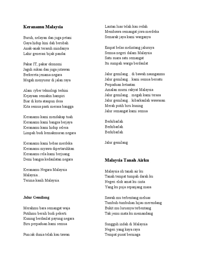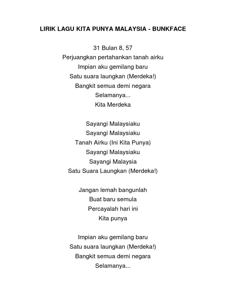 Amanah bangsa kita pikul bersama jadikan malaysia bahagia. Lirik malaysia bersih versi koir lagu tema hari kebangsaan 2019. Now we recommend you to download first result malaysia bersih lirik mp3. Sometimes, i like malaysia song. Ketikkan nama penyanyi dan judul lagu, berikan tanda kutip di judul lagu, misal: