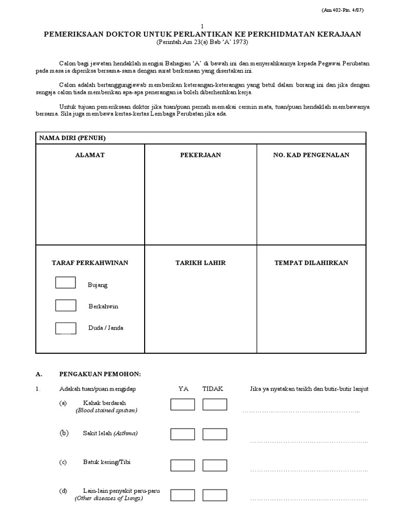 Related : Borang Medical Check Up Kerajaan - Cara Cara Mendapatkan Laporan Perubatan Medical Report Adib Yazid - Badan berkanun dan pihak berkuasa tempatan, perwakilan dan kedutaan perlu..